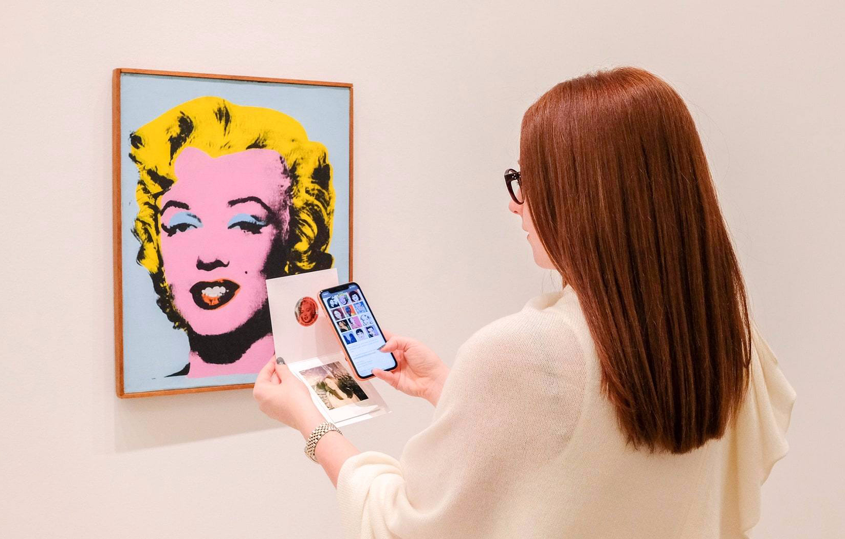 As many of Warhol’s works were based on photographs shot on a Polaroid camera, visitors to the exhibition can leave Warhol Women with their own Polaroid photo and NFC-enabled holder.